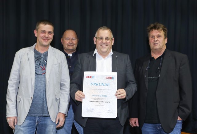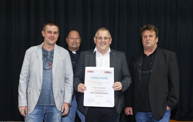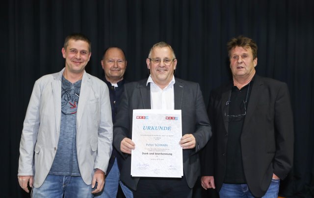 Bild:1: Überreichung der Dankesurkunde an den ehemaligen Glaser-Innungsmeister Peter Schnabl